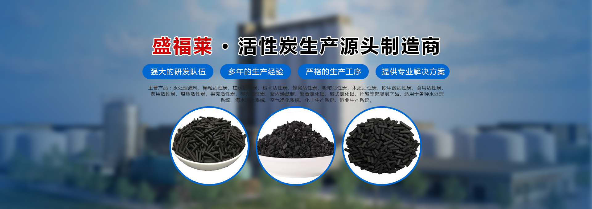 河南盛福萊環(huán)保科技有限公司是一家專(zhuān)業(yè)銷(xiāo)售各種規(guī)格型號(hào)活性炭、污水處理藥劑、碳源的公司,位于中原凈水材料基地-鞏義市,是從事各類(lèi)活性炭及相關(guān)產(chǎn)品生產(chǎn)、研發(fā)及銷(xiāo)售的一體化企業(yè)。主營(yíng)產(chǎn)品:水處理濾料、顆粒活性炭、柱狀活性炭、粉末活性炭、蜂窩活性炭、吸附活性炭、木質(zhì)活性炭、除甲醛活性炭、食用活性炭、藥用活性炭、煤質(zhì)活性炭、果殼活性炭、椰殼活性炭、聚丙烯酰胺、聚合氯化鋁、堿式氯化鋁等絮凝劑產(chǎn)品、碳源,適用于各種水處理系統(tǒng)、海水淡化系統(tǒng)、空氣凈化系統(tǒng)、化工生產(chǎn)系統(tǒng)、酒業(yè)生產(chǎn)系統(tǒng)。服務(wù)于各種大、中、小型自來(lái)水廠(chǎng)、石油化工廠(chǎng)、造紙印染廠(chǎng)、鋼鐵廠(chǎng)、發(fā)電廠(chǎng)、食品廠(chǎng)、冶金廠(chǎng)等行業(yè)。河南盛福萊環(huán)??萍加邢薰緞?chuàng)立以來(lái)